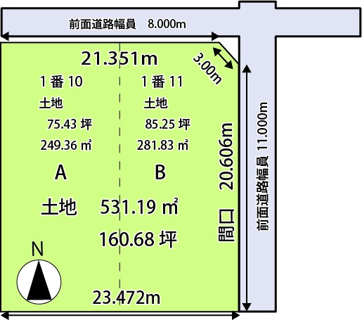 道路概況 | 東側 11.000m、北側 8.000m | 改装 | |